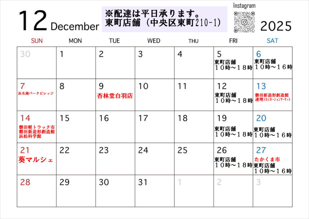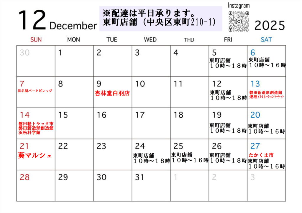 浜松市内にお住まいの方もしくは店頭受け取りの方はInstagramよりご注文承ります。